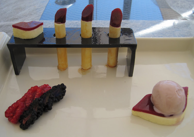 But it was Zplage’s Le Dessert that was the most unusual confection I have ever had melt in my mouth. My delectable lunch culminated with an incredible edible dessert named “L’Or, L’Or, L’Or, Lipstick. By L’Oreal Paris.” Trust me, you’ve never seen (or tasted) anything like it. L’Or, like a still-life painting, was a picture in white chocolate, cheesecake, raspberry coulis, and goodies I could not begin to figure out.