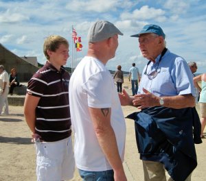 One of the most chilling, yet most thrilling, encounters I’ve had in my travels was when a strange man approached my husband on Omaha Beach and asked him if he had served in WW II. My husband, who was an 18-year-old sailor at the time, replied in the affirmative. The stranger then said his teenage son would like to know if he could shake my husband’s hand and speak with him. Somebody did something right, to raise a kid like that!